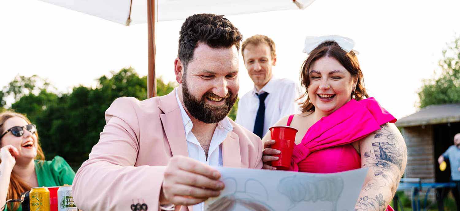 Add a spark to your wedding with high-energy entertainment! I engage guests with hilarious 5-minute sketches, perfect for breaking the ice from the drinks reception to the evening party. Plus, everyone takes home a unique, personalized souvenir they’ll treasure.