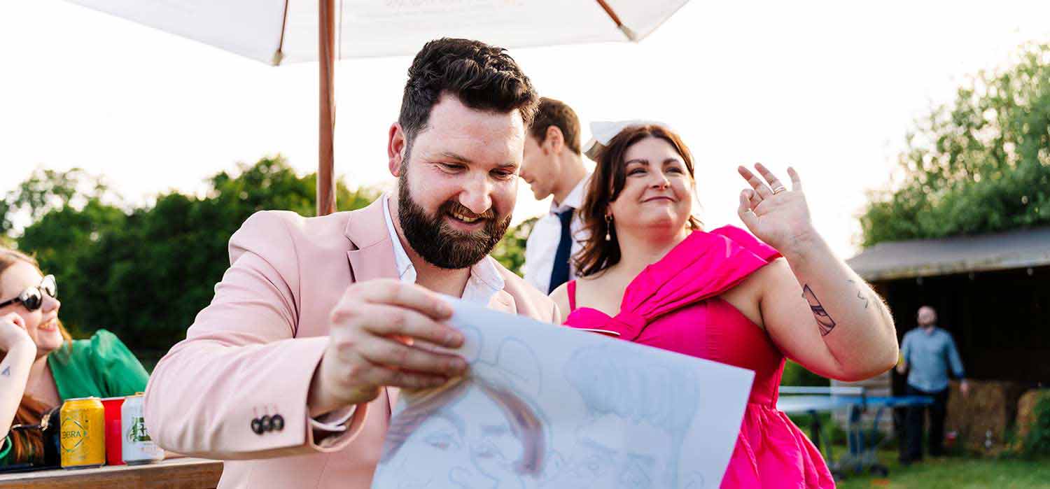 Whether I’m table-hopping at a East Grinstead wedding, mingling with guests at a 50th birthday blast, or acting as the Event Cartoonist for a corporate award ceremony, I ensure everyone is part of the fun. In just a few minutes, I’ll capture a convincing, funny likeness that serves as a fantastic ice-breaker and a lasting memento of your celebration.