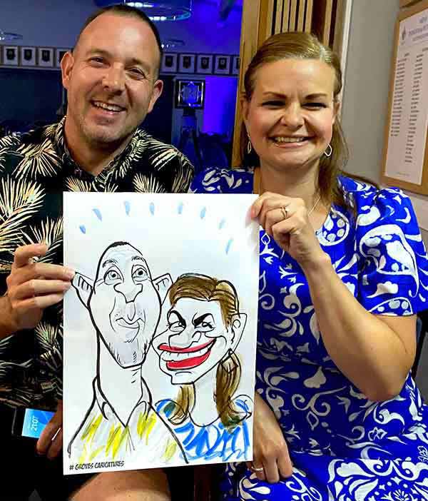 Fab, Fast and Fun Caricatures in Hampshire. Walkabout Caricature Artist David moves amongst your guests. Creating buzz, genuine connection, engagement, laughter and the occasional mayhem. From table hopping at Weddings, mingling at Award Ceremonies to a Event Cartoonist at a 50th birthday blast and loads more. He’ll humour your guests, and capture convincing funny faces in minutes. A real conversation piece!